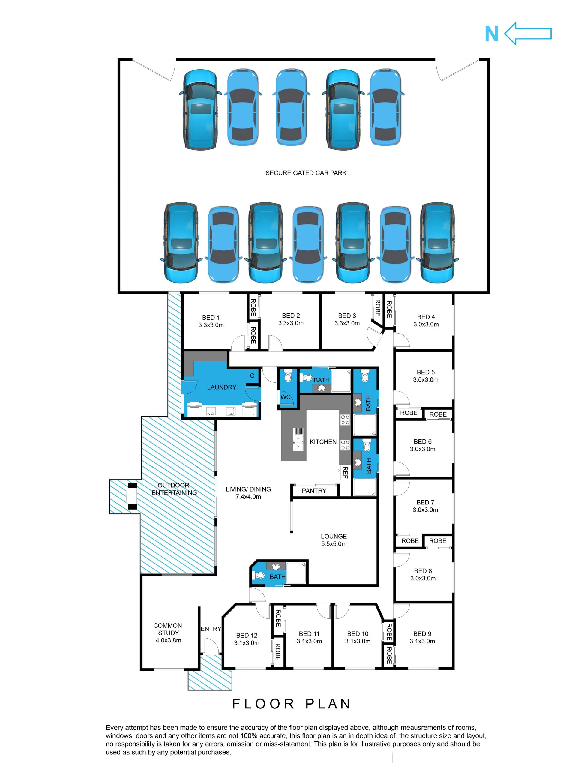 - Cleaner supplied who comes twice a month for common areas & bathrooms