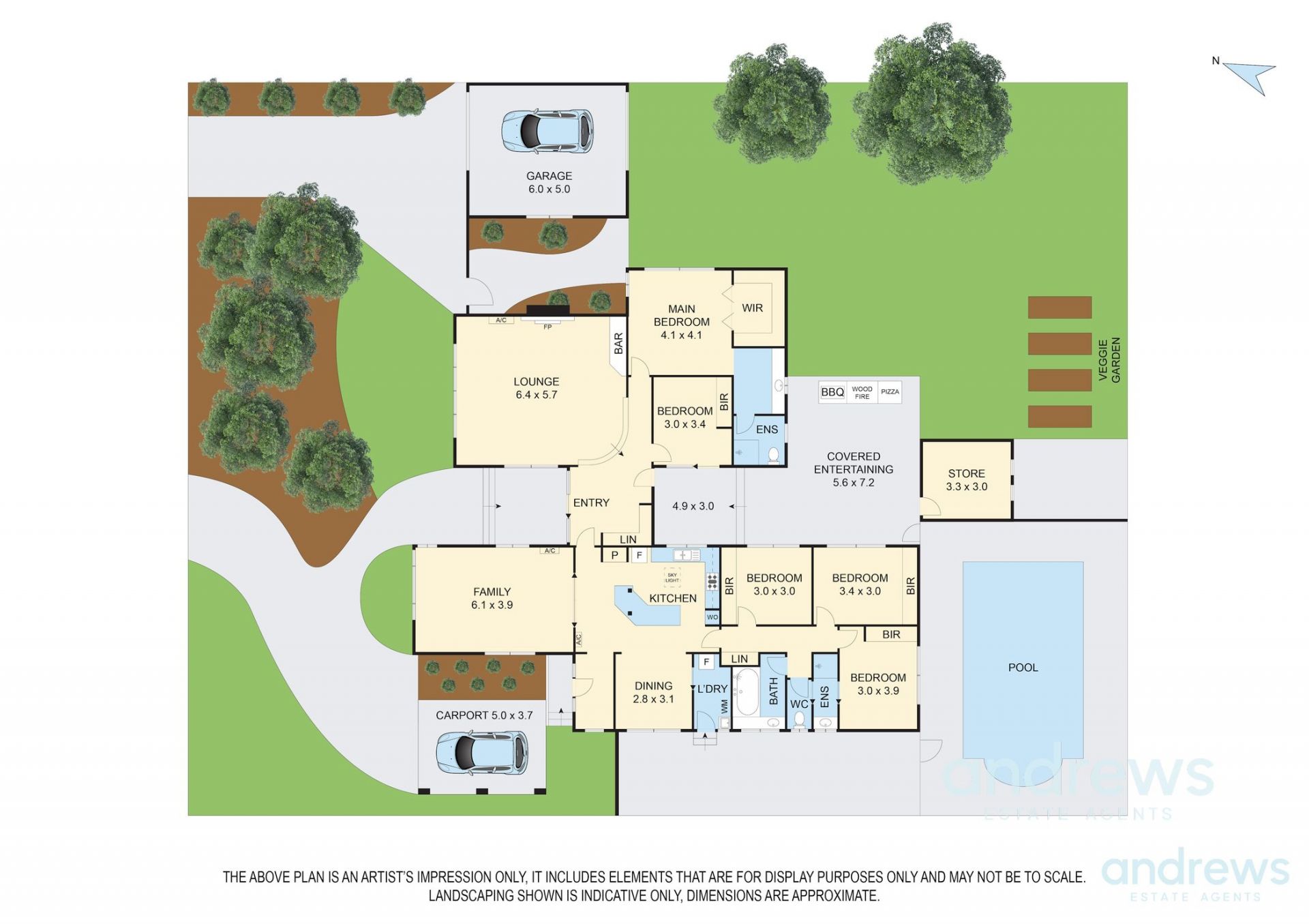 - 5 bedrooms with built in robes including master with large WIR and ensuite