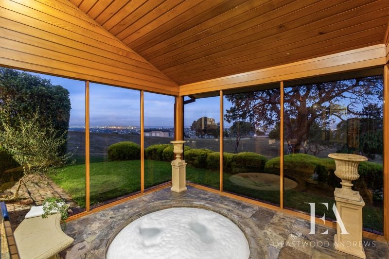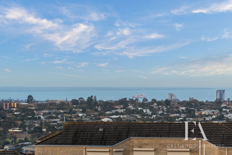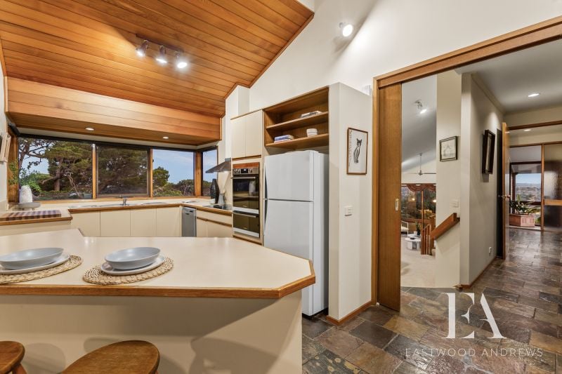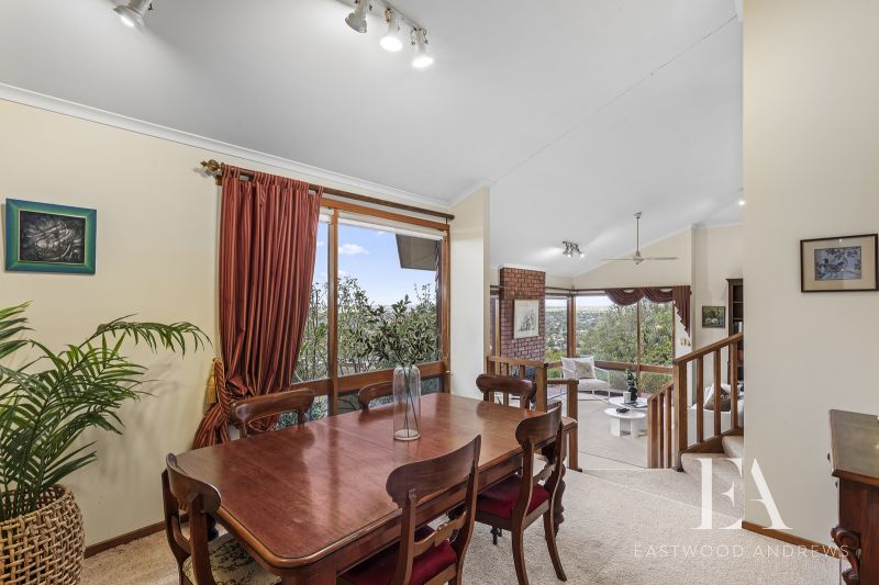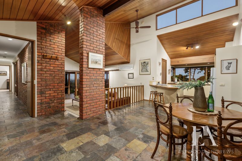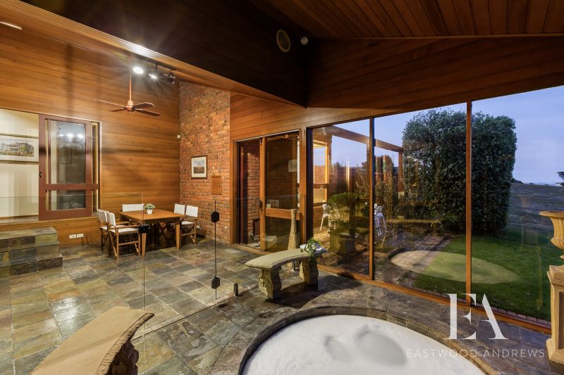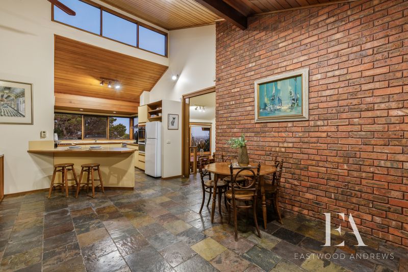 This classic 1980's Modernist style home maintains its original grace and character and sits proudly overlooking Montpellier Park. With commanding views over Geelong, Corio Bay and the You Yangs around to Anglesea. Upon entry the views impact you immediately as you step down to formal lounge with gas log fire and large bookcases, the ideal place to retreat to. The formal dining space opens to kitchen meals area and the chefs kitchen features great flow, workspaces, walk in pantry, updated appliances and stunning views again. Family relaxation is key with open plan living with soaring raked ceilings, brick feature wall/fireplace opening up to enclosed alfresco area with built in spa. There's 4 bedrooms plus study ,master with ensuite and WIR's and family bathroom plus separate shower room (a very 80's trait, but works well for a family). Year round comfort with ducted heating and split system cooling. Established gardens surround the home with fenced rear yard with garden shed, clothesline and direct access onto the park for the kids is fantastic. Land size is 723m2. Double carport plus under house workshop for secure storage complete this classic home. All of this with the convenience of Highton shops, Montpellier PS and Ring Road access this home is sure to appeal to a broad range of buyers.