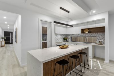Conveniently located at the front of the house is a formal lounge greets you on entry. The lounge showcases an elegant coffered ceiling, adding a touch of sophistication and architectural interest.A central hallway leads to the breathtaking open-plan kitchen features waterfall stone-bench tops, 900mm appliances, undermount rangehood, high end cabinetry, Bulkhead with pendant lights and dishwasher, plenty of cupboards along with the spacious walk-in-pantry and flows seamlessly into the vast meals/family area connects users to the alfresco through the living area boasts magnificent sliding door occupying the rear wall that bathes the space with enormous amount of light, making it a zone of utmost comfort.