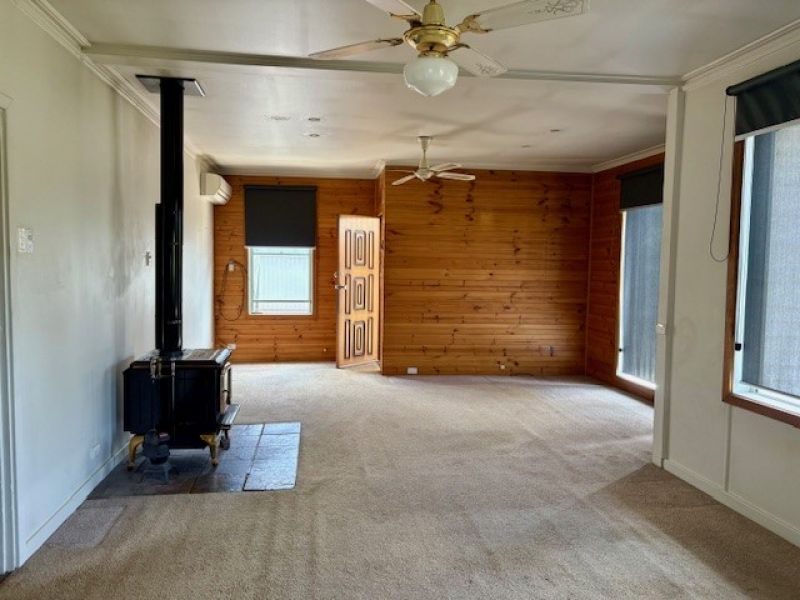 - Large open plan kitchen/dining/family with wood heater and split system